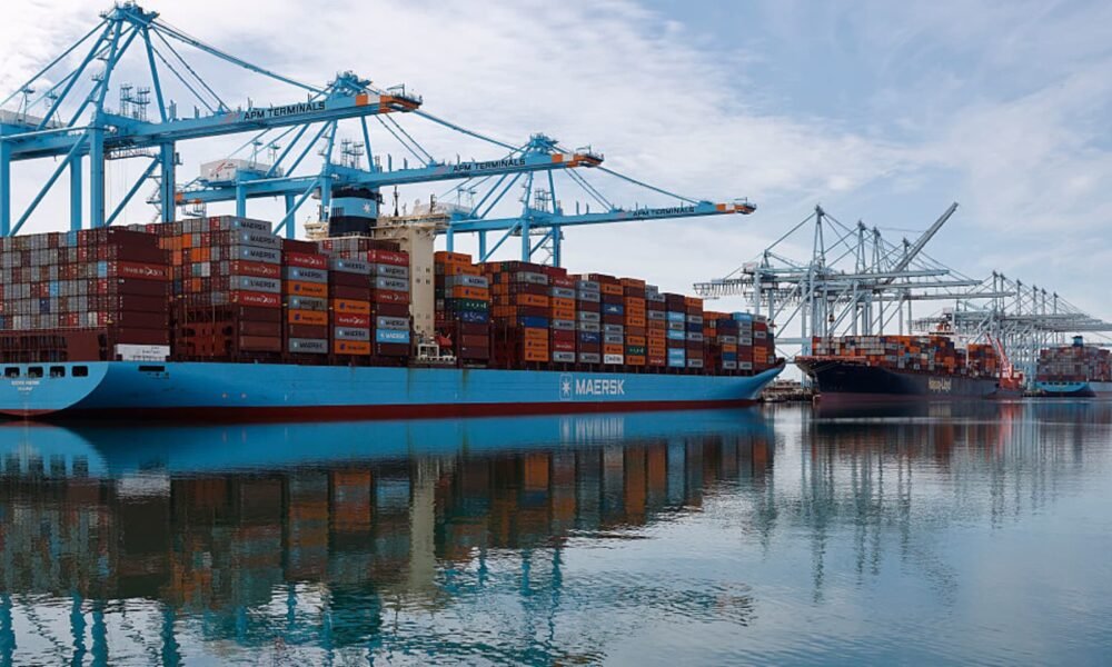 A person points at a page on the Marinetraffic website that shows commercial boats traffic on the edge of the Strait of Hormuz near the Iranian...