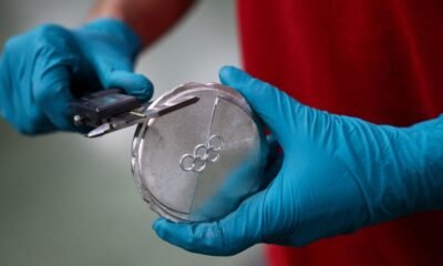 An employee works on an Olympic medal at the Italian Mint in Rome in December 2025. – Guglielmo Mangiapane/Reuters Athletes on the podium at the Winter...
