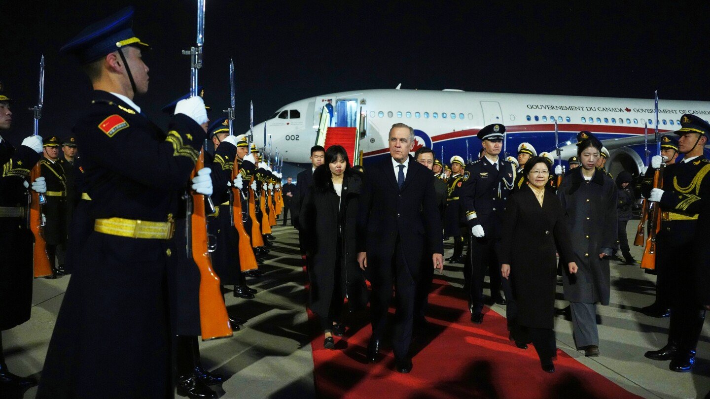 BEIJING (AP) — Canadian Prime Minister Mark Carney arrived in Beijing on Wednesday night, beginning a four-day visit designed to repair foundering relations between the two nations as Canada looks to develop ties with countries other than the United States.