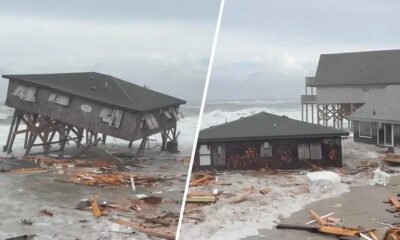 Five unoccupied houses along North Carolina’s Outer Banks collapsed into the ocean on Tuesday as Hurricanes Humberto and Imelda rumbled in the Atlantic, the National Park...