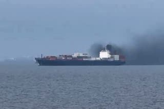In pictures: Smoke emerging from the Source Blessing cargo vessel in the Gulf