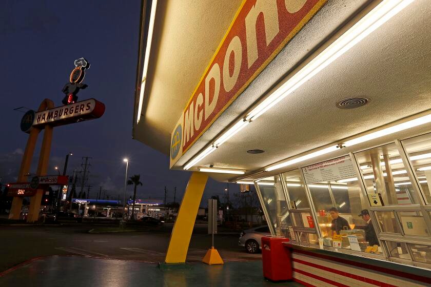The iconic McDonald’s restaurant that opened in the 1950s at the intersection of Lakewood Boulevard and Florence Avenue in Downey. (Luis Sinco/Los Angeles Times)