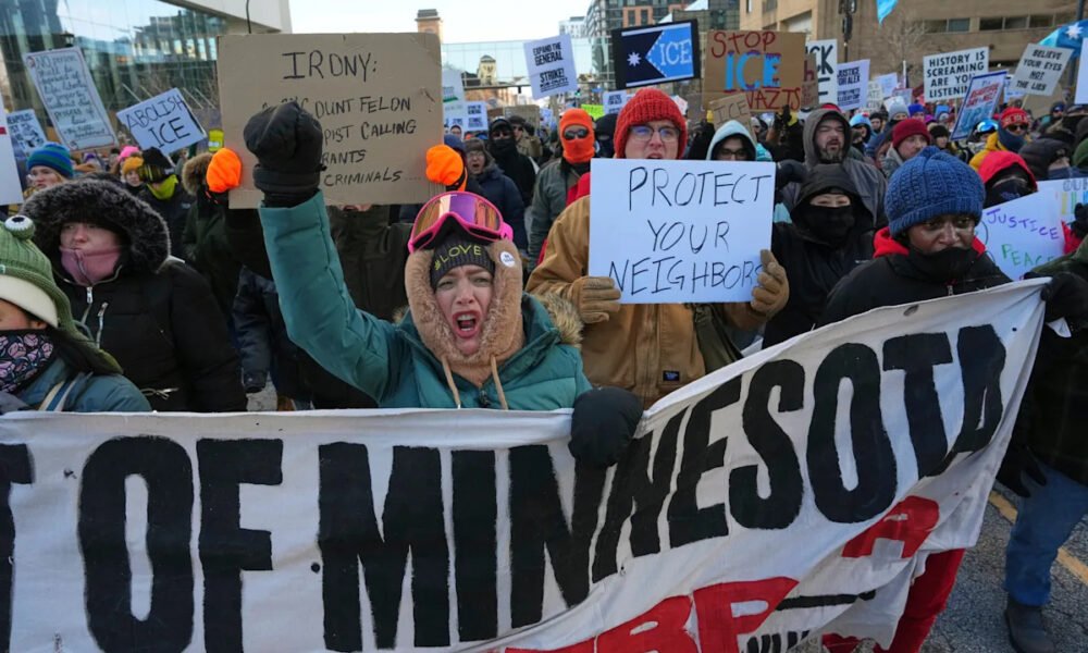 ABOARD AIR FORCE ONE (AP) — President Donald Trump said Saturday that he has instructed Homeland Security Secretary Kristi Noem not to intervene in protests occurring...