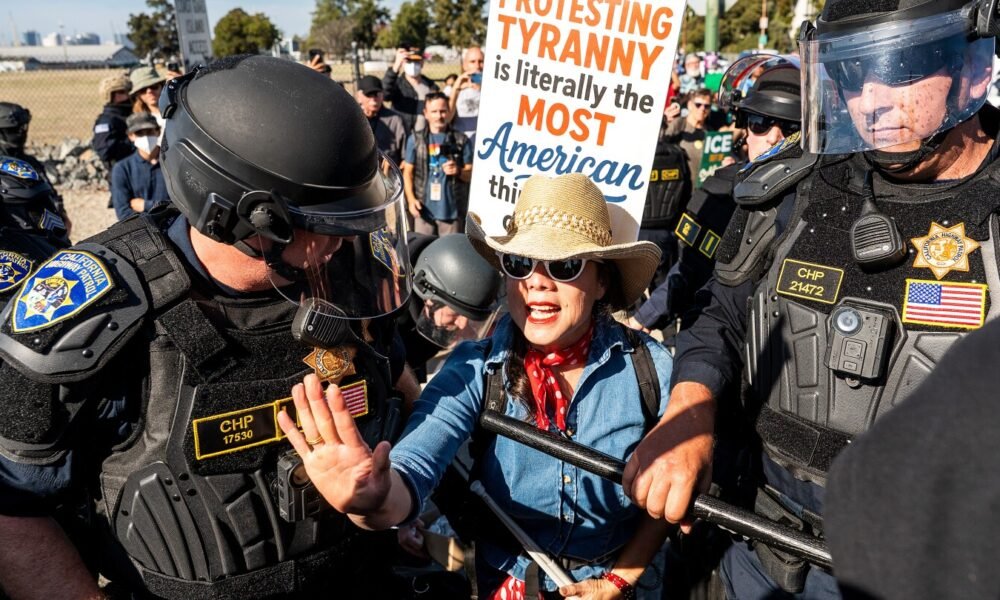 Demonstrators in the San Francisco area protested the arrival of U.S. Customs and Border Protection agents at a U.S. Coast Guard base on Thursday, as President...