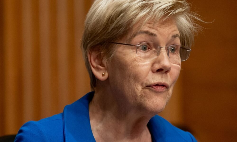Senator Elizabeth Warren, a Democrat from Massachusetts and ranking member of Senate Banking, Housing, and Urban Affairs Committee, speaks during a hearing in Washington, DC, US,...