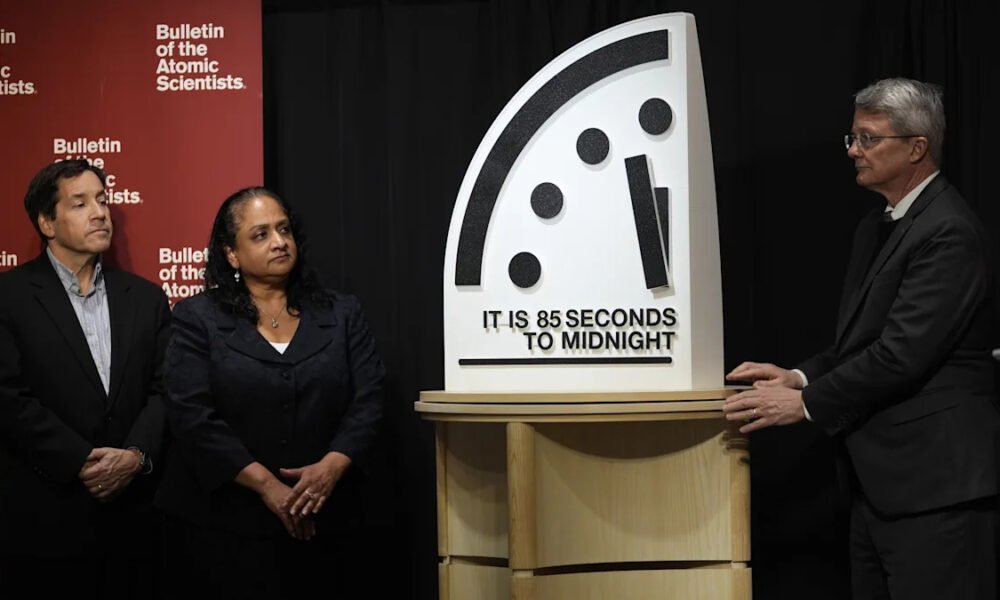 Humanity is closer to destroying itself, according to atomic scientists who revealed on Tuesday that the famous “Doomsday Clock” was set at 85 seconds to midnight...