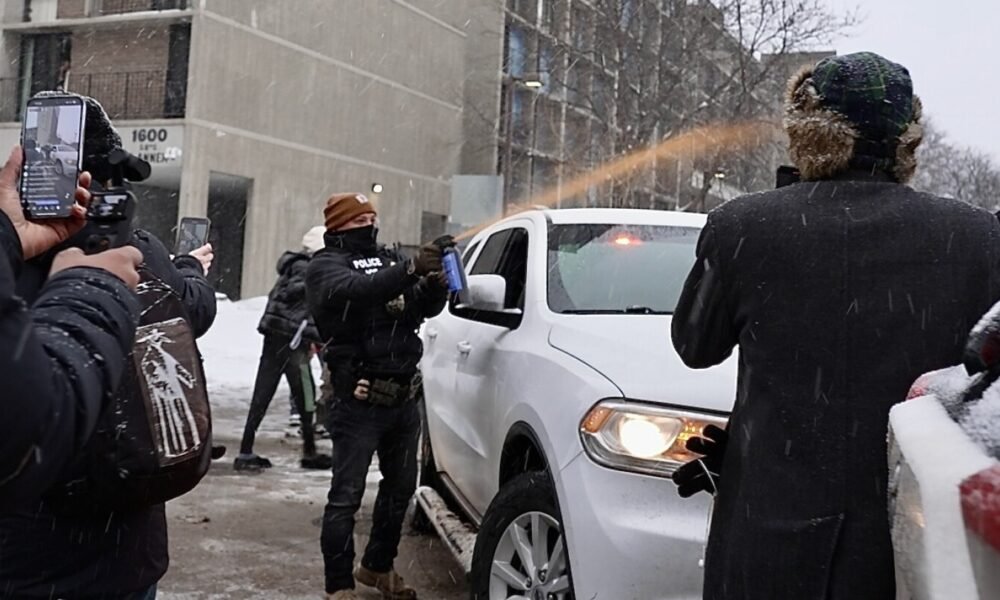 MINNEAPOLIS (AP) — Federal agents used pepper spray to push through an angry crowd that blocked their vehicles as they checked identifications in a heavily Somali...