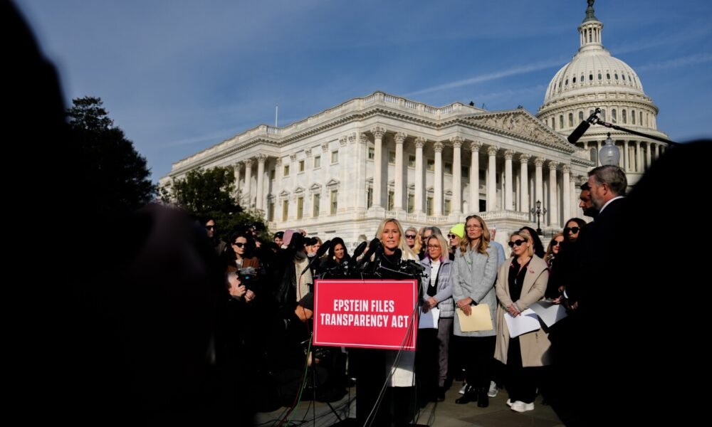 WASHINGTON (AP) — Georgia Rep. Marjorie Taylor Greene, a longtime loyalist of President Donald Trump, joined other Republicans outside the Capitol with several survivors of Jeffrey...