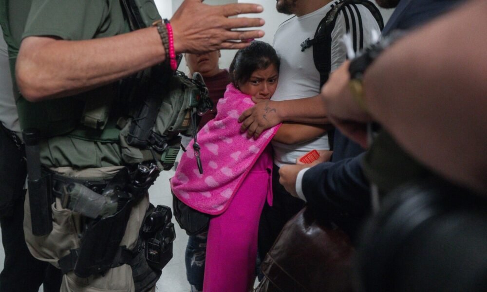 A girl clings to her asylum-seeking father as he is swarmed by agents outside an immigration court in lower Manhattan. Another man, the fear clear on...