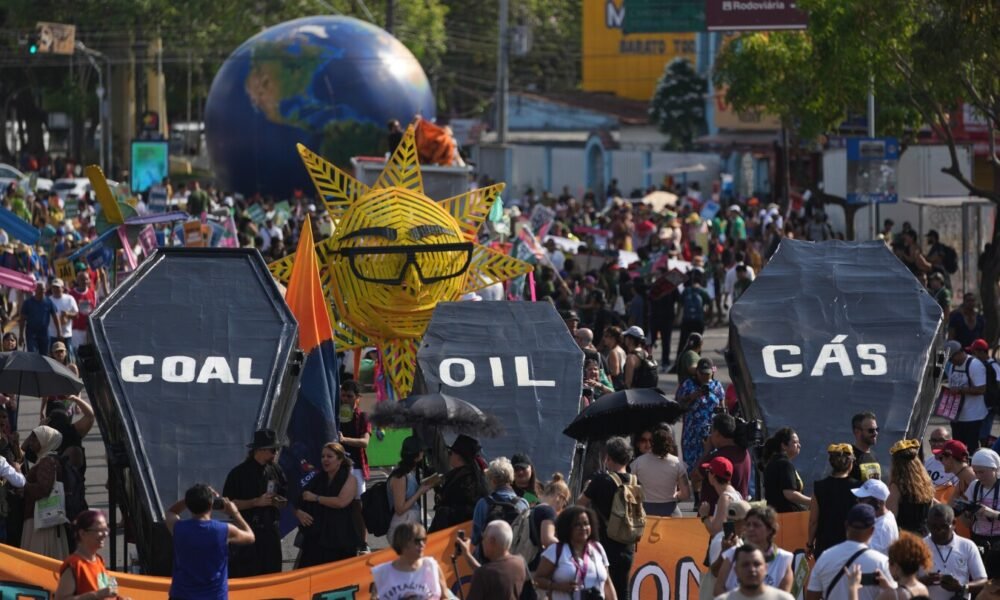BELEM, Brazil (AP) — Some wore black dresses to signify a funeral for fossil fuels. Hundreds wore red shirts, symbolizing the blood of colleagues fighting to...