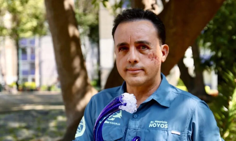 Mauricio Hoyos still remembers the pressure that the jaws of a female Galapagos shark, over 3m (10ft) in length, exerted on his skull. The animal had...
