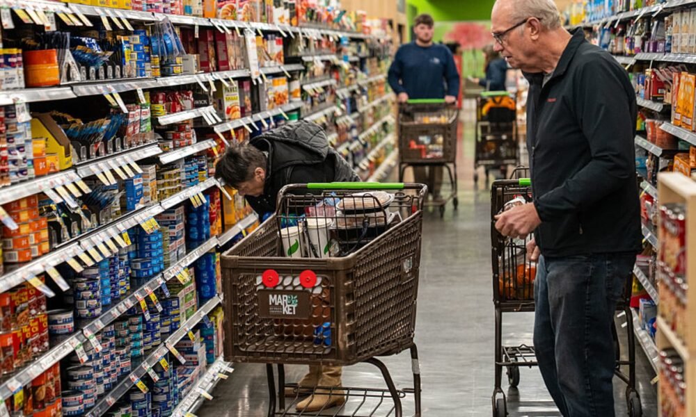 Shoppers look at a canned fish display Nov. 4, 2025 at the Market 32 Supermarket in South Burlington, Vermont. Robert Nickelsberg | Getty Images As stock...