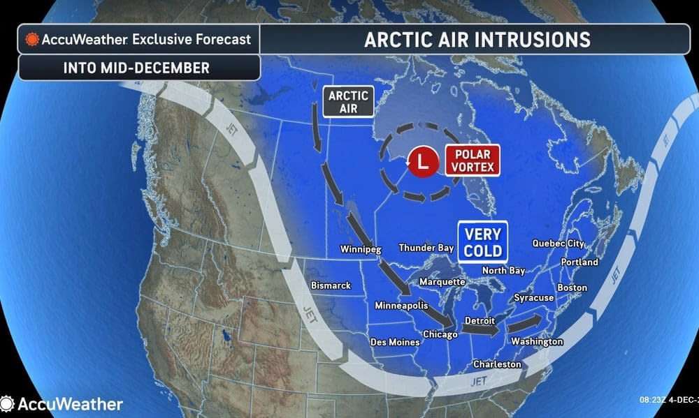 Three rounds of cold Arctic air from a shifting polar vortex are expected to plunge much of the central and eastern U.S. into a cold snap...