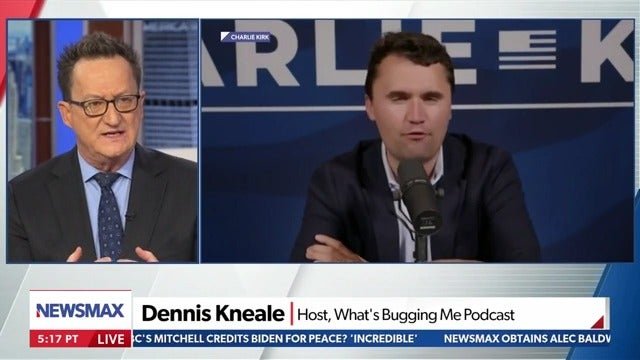 Newsmax guest Dennis Kneale, who has styled himself as a free speech champion, said that he does not want visa holders who mocked Charlie Kirk’s death to ‘have free speech’ (Newsmax)