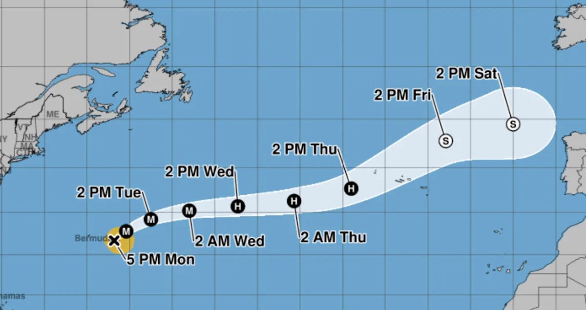 Earlier forecasts had suggested that Gabrielle may be on a path straight toward Bermuda, but more recent predictions have it passing well to the east of the island nation. The storm is expected to continue to create dangerous tidal conditions on the islands for the next few days. Parts of the East Coast of the United States may also experience “life-threatening surf and rip current conditions,” according to the National Hurricane Center.
