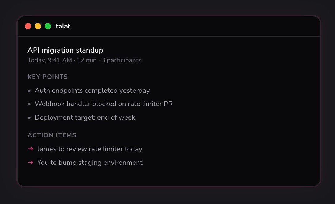 Talat’s AI meeting notes stay on your machine, not in the cloud