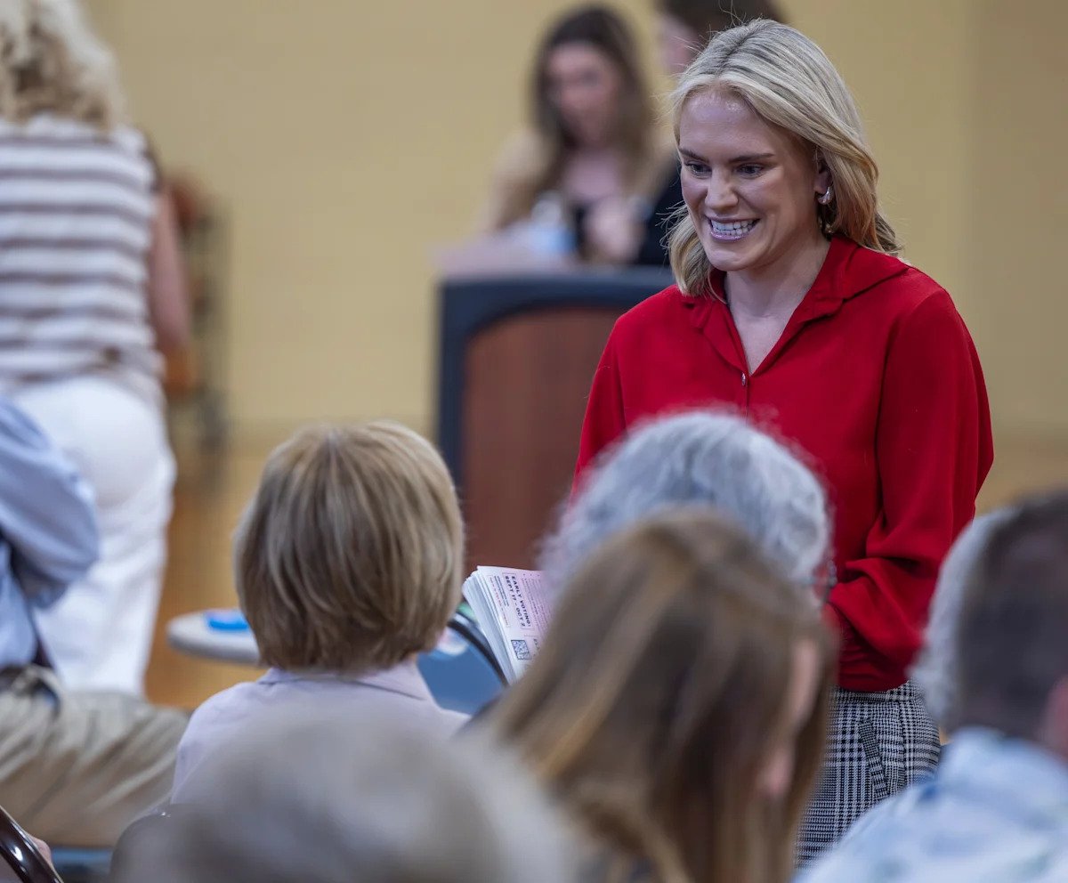 Tennessee State Representative Aftyn Behn speaks to members of the audience before the start of a Democratic Party forum for candidates running for the 7th Congressional District special election at the Fairview Recreation Center in Fairview on Sunday, Sept. 7, 2025.