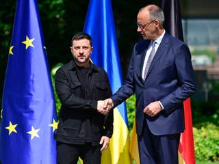 In pictures: Zelensky greeted by Merz in Berlin