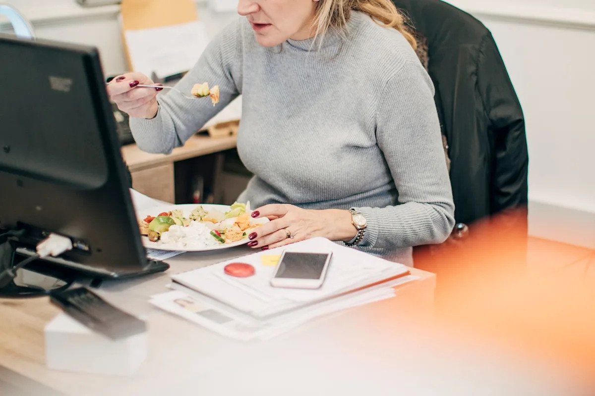 Getty Stock photo of a woman stressed having a meal